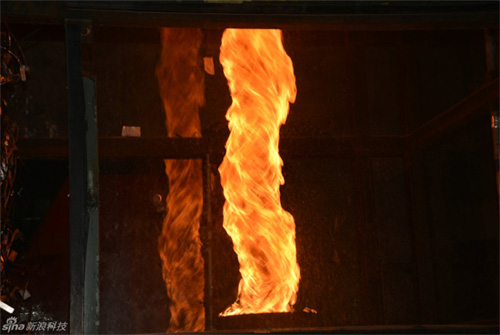10月23日,中国科学技术大学火灾科学国家重点实验室的“火旋风”模拟实验演示,火焰窜至约3层楼高。实验室以受限空间建筑火灾为中心,探索火灾的发生、发展规律;烟气的输运规律;紧急条件下建筑物(群)内人员的疏散规律等,为建筑火灾性能化设计方法提供科学依据。