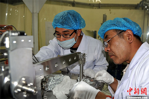 10月23日,中国科学技术大学国家同步辐射实验室,科研人员正在进行相关科研设备的安装调试。该实验室是1983年中国批准建设的第一个国家实验室,目前正在实施提升性能指标的升级改造任务,升级改造共投资1.9亿元人民币,预计2014年上半年验收,目标是光强提高50倍,实验能力比改造前提高近50倍。中新社发 孙自法 摄