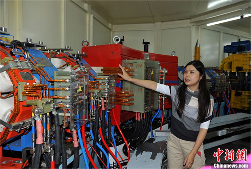 10月23日,中国科学技术大学国家同步辐射实验室,工作人员介绍实验设备装置。该实验室是1983年中国批准建设的第一个国家实验室,目前正在实施提升性能指标的升级改造任务,升级改造共投资1.9亿元人民币,预计2014年上半年验收,目标是光强提高50倍,实验能力比改造前提高近50倍。中新社发 孙自法 摄