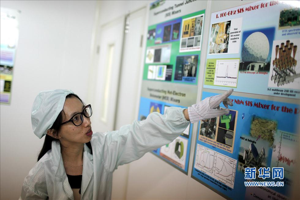 研究人员在介绍应用在超导成像频谱仪上的超导隧道结器件芯片。利用安装在13.7米毫米波望远镜上的超导成像频谱仪,南京市中科院紫金山天文台的研究人员提出银河关键切面——银道面巡天计划,即“银河画卷计划”。该计划将利用8-10年的时间完成该区域数据获取和处理任务,实现重要恒星形成区的微观组成、年轻星天体的发现等一系列科学目标,对于研究恒星和行星的起源和演化规律起着重要作用。该计划于2011年11月正式开始,至今已完成巡天计划的五分之一,取得了超新星遗迹、天鹰座、双子座、北美星云性质分子云等天区的数据。新华社记者 金立旺摄