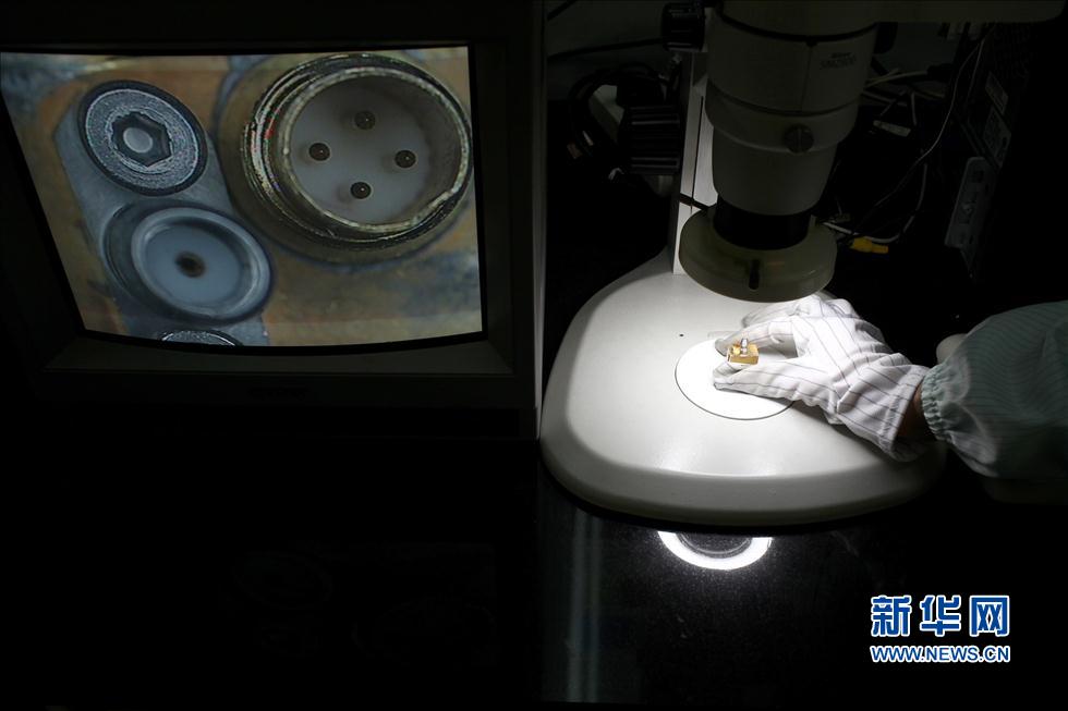 研究人员正在使用显微镜查看安装在超导成像频谱仪上的关键元件。利用安装在13.7米毫米波望远镜上的超导成像频谱仪,南京市中科院紫金山天文台的研究人员提出银河关键切面——银道面巡天计划,即“银河画卷计划”。该计划将利用8-10年的时间完成该区域数据获取和处理任务,实现重要恒星形成区的微观组成、年轻星天体的发现等一系列科学目标,对于研究恒星和行星的起源和演化规律起着重要作用。该计划于2011年11月正式开始,至今已完成巡天计划的五分之一,取得了超新星遗迹、天鹰座、双子座、北美星云性质分子云等天区的数据。新华社记者 金立旺摄