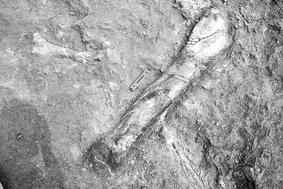 此次发掘地点位于莱阳市金岗口村东二号恐龙化石遗址保护馆东侧的玉米地中,在已经平整好的一处面积约40平方米的赭红色土坡上,横七竖八地裸露着20多块大小不一的恐龙骨骼化石,其中最大的一块肱骨化石长60多厘米。“目前大部分发掘出土的恐龙骨骼化石都已经用石膏包裹封存了起来,现已固定石膏包130余件,每个石膏包内含恐龙骨骼化石1至3件,待该区域化石全部发掘完毕后再进行组装和修复。”正在现场进行科考发掘的中科院王强博士告诉记者,为保护好这些出土的恐龙骨骼化石,科考队将化石连同包裹化石的土壤一并起出,用石膏进行密封,并逐一编号,以备后期的修复和研究使用。