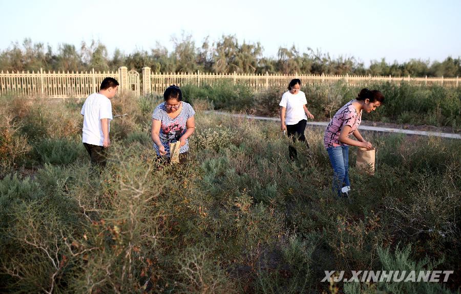 8月10日,研究人员在中科院新疆生态与地理研究所吐鲁番沙漠植物园的苗圃里采集标本。