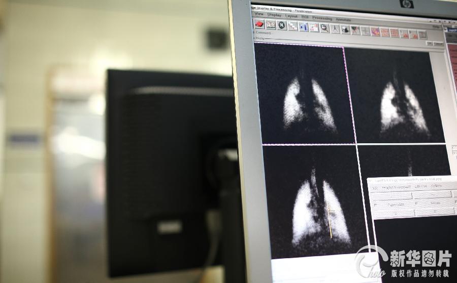 这是成功获得的国内首幅小动物活体肺部的MRI影像(8月1日摄)。中科院武汉物理与数学研究所周欣研究员领衔的研究团队是目前国内唯一开展超极化气体肺部磁共振(MRI)成像的研究组,他们的研究目的是“点亮肺部”,不仅获得目前胸透、CT和PET等肺部成像手段可以获得的肺部结构信息,还将对肺部气体交换功能进行可视化研究,从而开展人体肺部重大疾病的诊断前研究。目前,该团队已成功获得国内首幅小动物活体肺部的MRI影像,预计四年左右以后可以开展临床研究。新华社记者 金立旺 摄