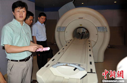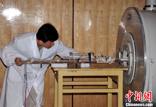 周欣研究员领衔研究团队科研人员,在实验室内演示该团队研制成功的肺部磁共振成像仪操作过程。据了解,该团队目前已研发出具有自主知识产权的新一代超极化装置,并成功获得中国国内首幅小动物活体肺部磁共振影像。中新社发 孙自法 摄