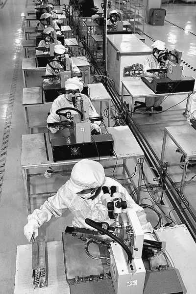 四川遂宁以电子产业园为平台,帮助企业提速增效。图为忙碌的技术人员。