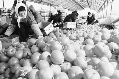 山东博兴菜农把刚采摘的“反季节蔬菜”西红柿装箱运往各地市场。