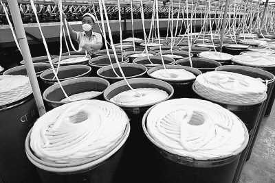 纺织企业通过技术改造,优化产业布局。图为流水线上的工人。
