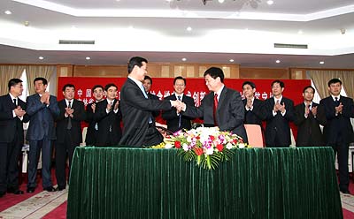 院省领导在签字后互致祝贺