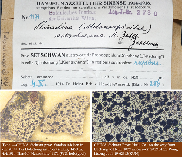 饼干衣属(Rinodina)是全球广布的地衣类群,其中,5个种由Handel-Mazzetti在横断山地区采集,但由于当时采集的标本不完整、物种描述简单,缺乏解剖特征和特征化合物等关键分类信息,导致该属地衣物种组成混乱、分类界定不清。