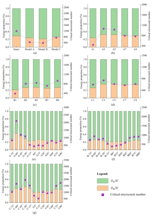 图4.剪切破坏时临界微裂纹数量与临界耗散能占比对比