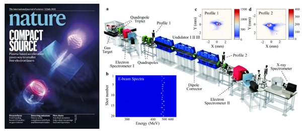 中国科学院上海光学精密机械研究所强场物理国家重点实验室研究团队利用自行研制的具有国际领先综合性能的超强超短激光装置,在基于激光加速器的小型化自由电子激光研究方面取得突破性进展。
