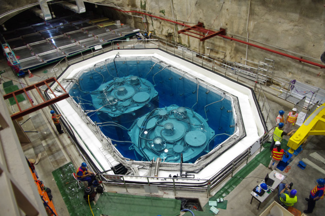 中微子探测器成功安装在巨型水池之中