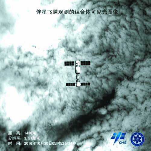 在1.4公里处,可见光相机拍摄组合体的分辨率为3.5厘米,图像明暗细节清晰,对比度高