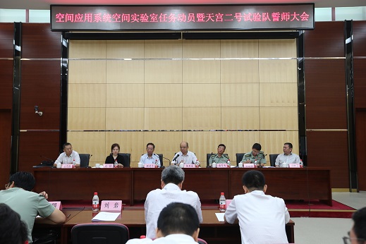 会上,载人航天工程空间应用系统总设计师赵光恒传达了近期载人航天工程“两总”联席会、载人航天工作会的会议精神和上级领导的重要指示;载人航天工程空间应用系统总指挥、中科院空间应用中心主任高铭传达了军委装备发展部部长张又侠、政委王洪尧关于空间实验室任务的重要讲话精神,宣读成立天宫二号任务发射场试验队、北京试验队、着陆场试验队的决定以及任务组织指挥方案和各试验队主要岗位人员等,并作了任务动员,强调空间应用系统要坚决贯彻落实上级领导关于空间实验室任务的批示和讲话精神,在更高的起点上推进工程创新发展,实现航天梦、中国梦。