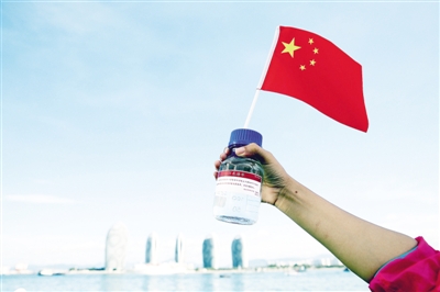 科研人员展示从万米深渊获得的海水样品。新华社记者 金立旺摄