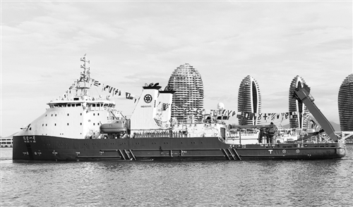 8月12日上午,我国4500米载人潜水器及万米深潜作业的工作母船“探索一号”科考船首航归来,停靠三亚码头。记者沈慧摄