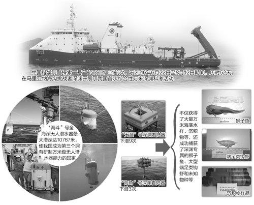 中国科学院“探索一号”船TS01-01航次,于2016年6月22日至8月12日期间,历时52天,在马里亚纳海沟挑战者深渊开展了我国首次综合性万米深渊科考活动。那么,“探索一号”都取得了哪些令人骄傲的成果?