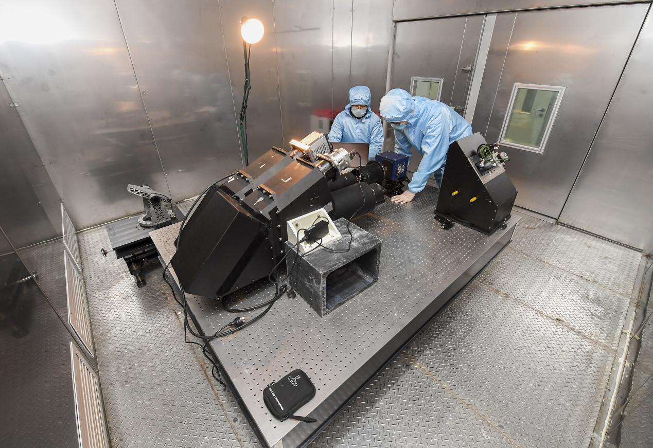 信噪比是CO2探测仪的又一关键指标。为降低仪器噪声,整台仪器需要工作在-5℃温度水平,科研人员所有的组件、整机装调工作也都要在-5℃条件下进行。在载荷研制最紧张的阶段,研究人员持续数月在低温室里工作,经常户外是30℃以上的高温,科研人员在低温室内把羽绒服裹在防静电服内进行装调。