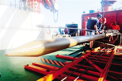 即将被投放入水的“巨型体温计”——热流探针。