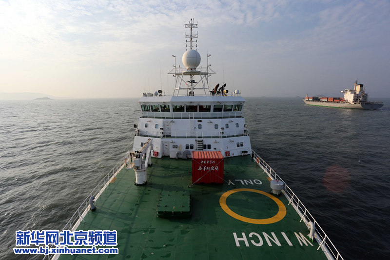 这是“科学号”海洋科考船起航后穿越台湾海峡(1月10日摄)。 新华社记者 孟菁 摄