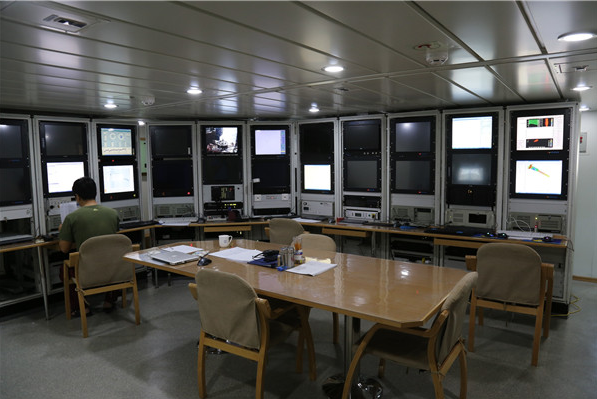 与老一代科考船购买外国船体,改造后加装科考设备不同。“科学号”在设计之初就考虑到整体性,在船体内嵌入了各种实验室。“科学号”实验室主任连超说,实验室布局包括通用干性实验室、通用湿性实验室、重力仪室等,总面积670平方米。在综合仪器室内,多个实验设备可以联动,实时对探测数据进行获取、传输、储存、显示与处理。