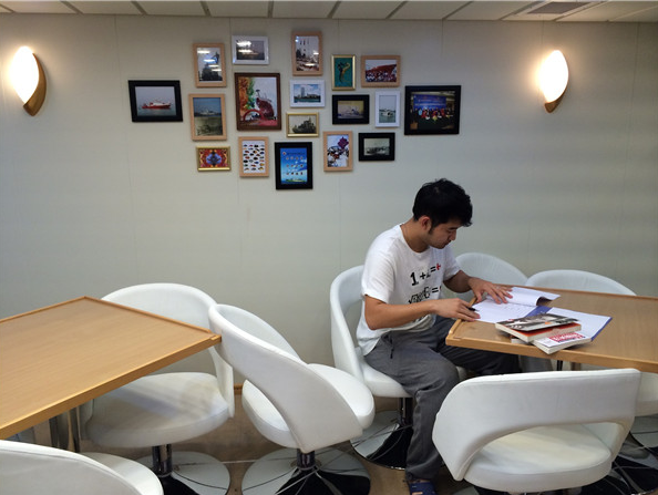 “科学号”上的阅览室。 赵琬微2014年12月15日摄(新华社/中国特稿社)