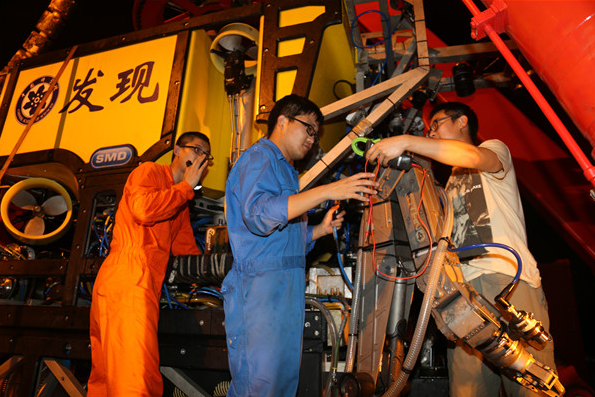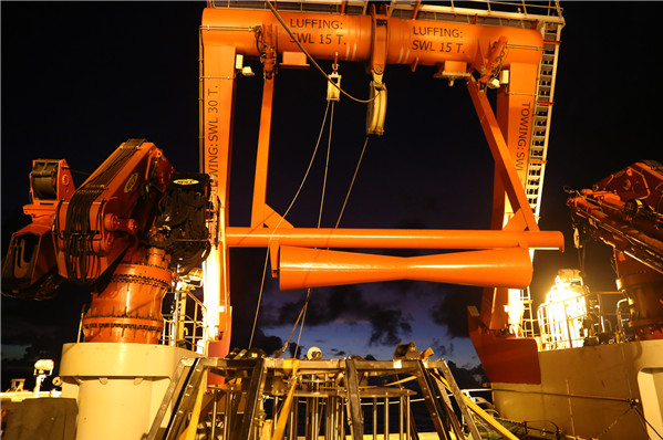 夜间入海的仪器设备。 赵琬微 摄 (新华社/中国特稿社)