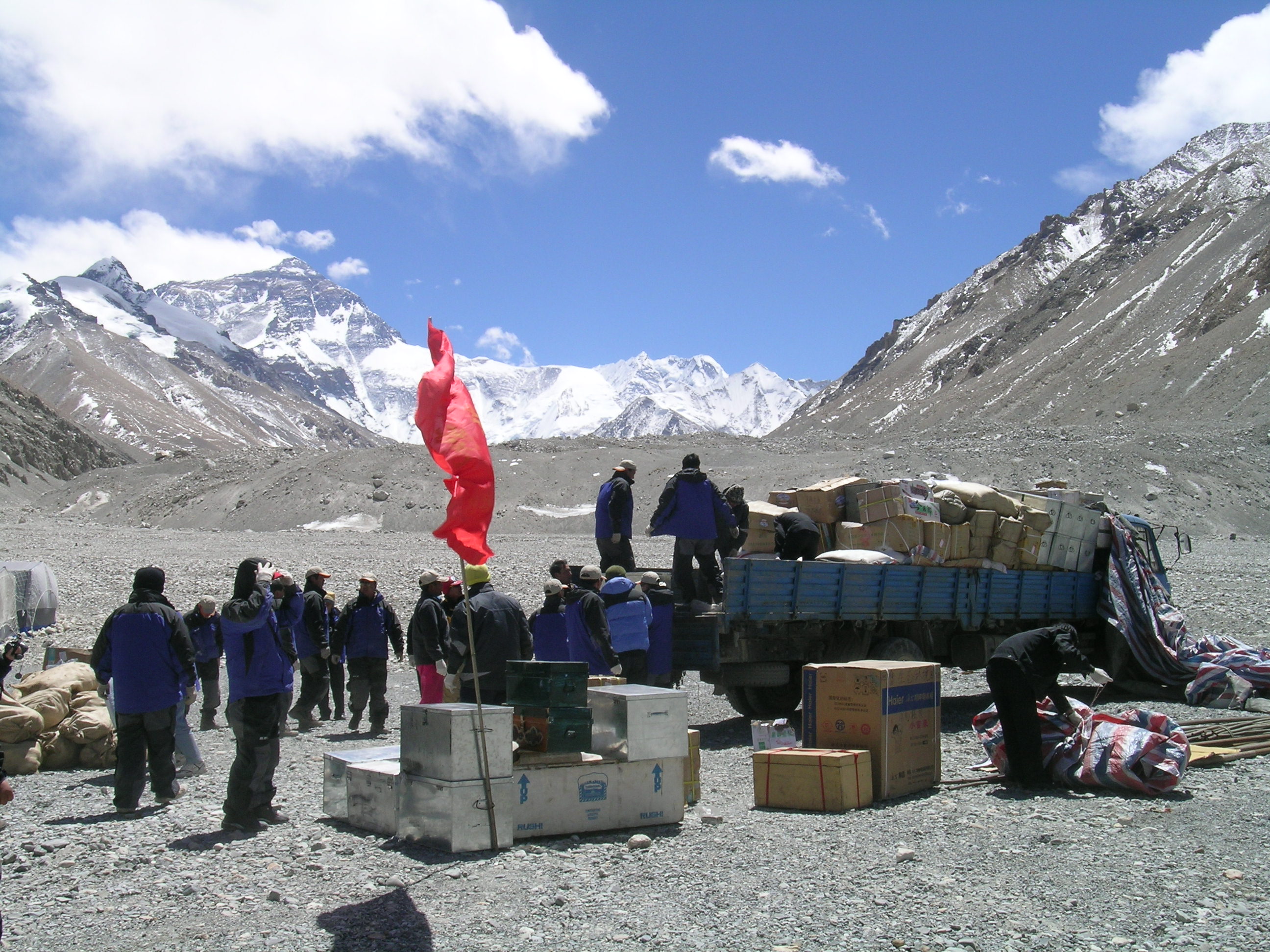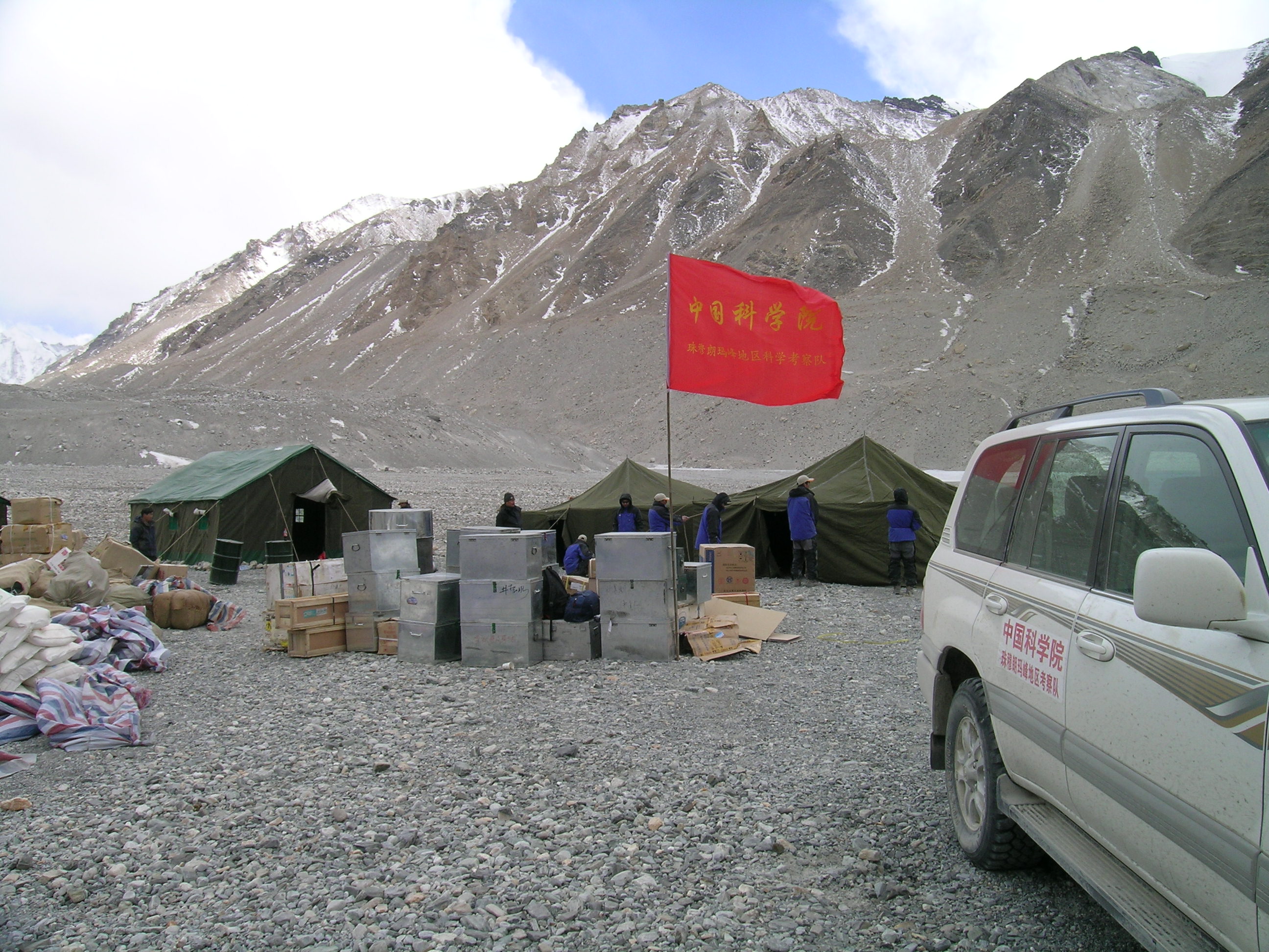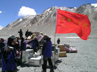 红旗飘扬在珠峰大本营