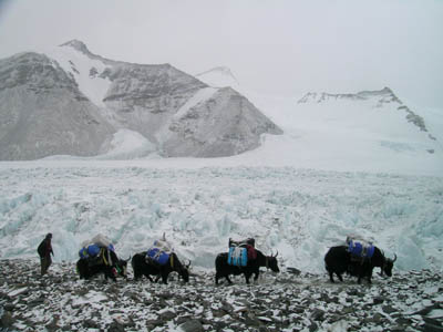 用来向高山营地运送物资的风雪之舟——牦牛队