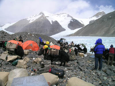 大本营的物资要运到高山营地上去,科考队员们开始拔营起程。