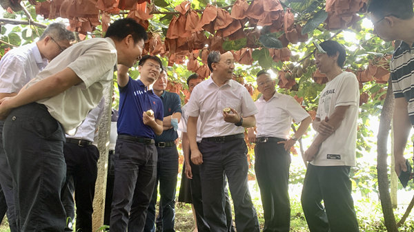 24日上午,张涛一行到蟠龙镇百车河社区滥窖田猕猴桃产业基地、仓脚省级乡村振兴示范点调研了中科院系统化、成建制帮扶猕猴桃产业发展和乡村振兴示范点建设进展情况,与猕猴桃种植大户和社区干部,以及中科院挂职干部、驻村第一书记、科技帮扶队队员亲切交谈,实地了解科技帮扶工作进展。