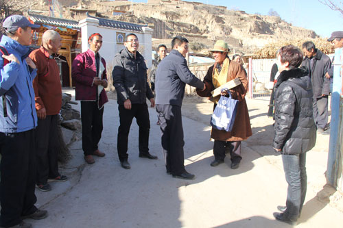 慰问小组一行在青海盐湖所驻村第一书记的带领下,走家串户实地考察了工作队一年来在精准扶贫工作中取得的成绩。日扎村是一个“挂”在山腰的贫困村,共154户701人,有耕地1766亩,其中水浇地393亩,旱地1373亩,种植结构单一,主要以小麦、洋芋等为主。村民大多有靠挖虫草,干重体力工作赚取报酬,劳动强度大,收入较低。在2017年精准扶贫工作中,青海盐湖所驻村工作队对贫困户申请书、信息采集表、收入证明、家庭成员身份证复印件、户口簿复印件、成员照片、低保证、残疾证、养老医疗发票等各类资料进行了规范整理,贫困户一户一档精准识别,切实做好了建档立卡工作。根据扶贫工作“八个一批”要求,低保兜底脱贫6户31人;产业扶持脱贫3户20人。2017年通过“结对子”帮扶,为9户贫困户捐助资金1.9万元。2017年底9户贫困户人均纯收入超过3532元,日扎村实现全面脱贫。