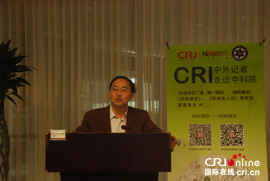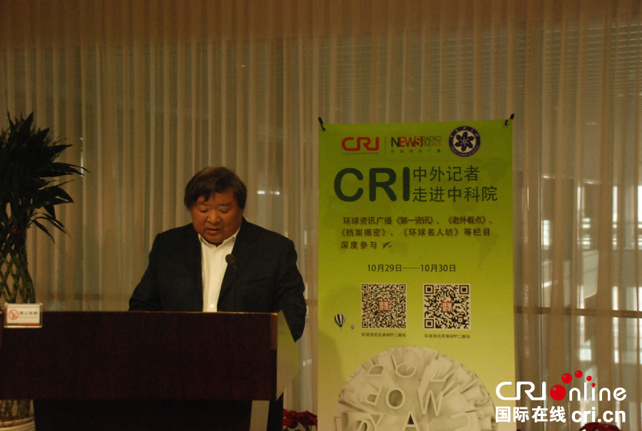 中科院科学传播局局长周德进介绍说,11月1日是中国科学院建院成立65岁生日,65年以来,中科院一直追随党的政策,追求真理,致力于服务中国科学事业的发展,为中国社会、经济、民生的全面发展以及人类知识的发展做出贡献。周局长指出,中国国际广播电台作为全球化媒体,将中国介绍给了世界,对中国的国际传播事业做出了重大贡献,希望中科院与中国国际广播电台未来能有更多的合作。