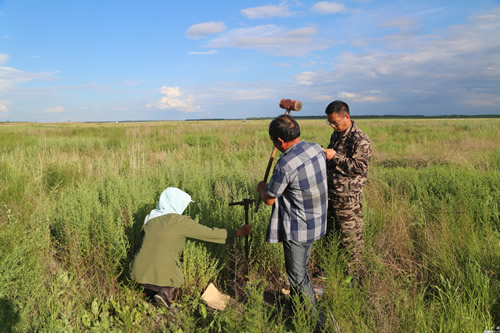 长岭草地农牧生态实验站科研人员在采集土壤样本(摄影记者黄光辉)