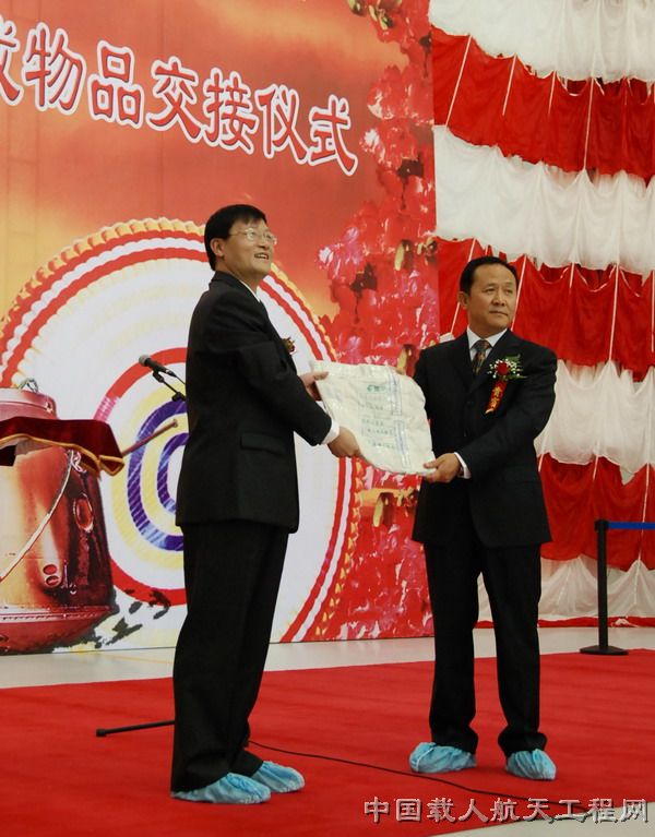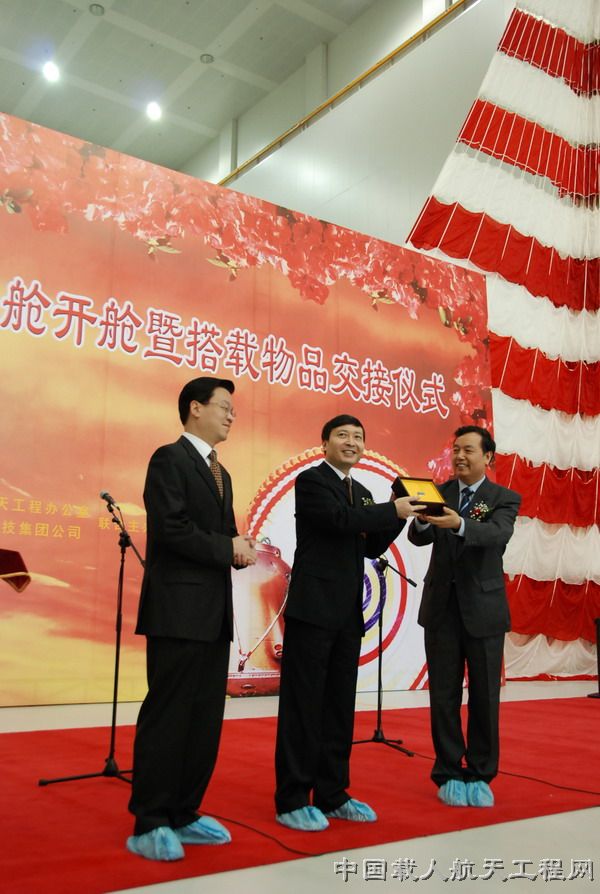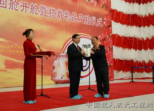 2008年10月1日上午10点,由中国载人航天工程办公室和中国航天科技集团公司联合举办的神舟七号飞船返回舱开舱仪式暨搭载物交接仪式在神舟飞船的诞生地——中国航天科技集团公司所属中国空间技术研究院隆重举行。