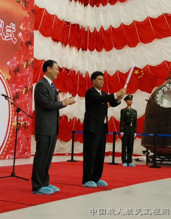 中国载人航天工程副总指挥张建启,中国载人航天工程副总指挥、中国航天科技集团公司总经理马兴瑞,中国载人航天工程总设计师周建平,中国载人航天工程办公室主任王文宝,中国航天科技集团公司副总经理袁家军以及工程各系统的代表与北京市公证处的公证员们共同见证了这一神圣时刻。