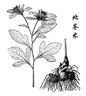 苍术是一种能除湿气、驱瘟避秽的药物。听老大夫说,1956河北某地暴发流行性乙型脑炎,当时的名医蒲辅周老先生用专治高热、大汗、大渴等证的方剂白虎汤治疗,效果显著;但事隔不久,北京也暴发了大规模的“乙脑”,当人们再用白虎汤时,效果就不那么灵验了,这时蒲老在方中加入苍术一物,立时疗效大增,疫情很快得到控制。据蒲老分析,前一次“乙脑”流行,病人外感温热病邪者多,白虎汤清热泻火,遂随手而愈;后一次流行,由于气候潮湿,病人感染了湿热夹杂的邪气,仍一味清热便力不从心,方中加入芳香燥湿的苍术后,方子变得既清热,又除湿,这才是针对病机的治法。