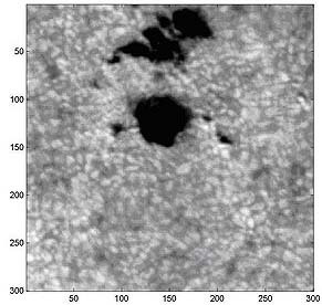 在中科院云南天文台的大力协助和支持下,中科院光电技术研究所饶长辉领导的太阳自适应光学实验小组,于9月28日在云台26厘米精细结构望远镜上进行的自适应光学实验取得初步成果,在国内首次实现对太阳目标的自适应光学校正,获取了太阳表面结构高分辨图像(观测波长为550 nm),验证了自适应光学技术对太阳等低对比扩展目标实现高分辨观测的可行性。