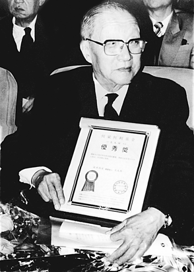 资料照片 1995年1月12日,王大珩在首届“何梁何利基金”奖颁奖大会上。