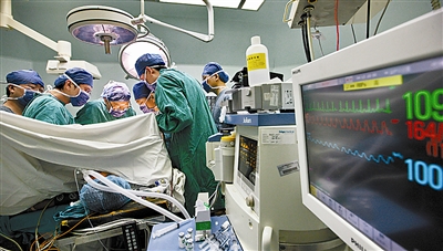 吴孟超的一天:10时16分手术进行中,画面展示了现代化外科手术室一角。