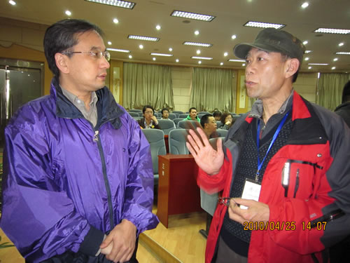张建新与无锡心理援助志愿者杨伦探讨援助工作