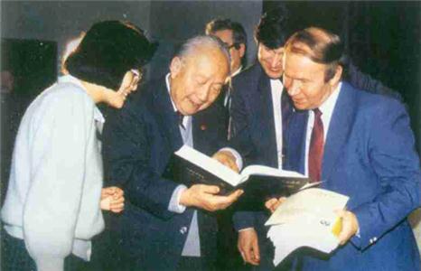 会见白俄罗斯教育代表团并赠送《钱伟长科学论文选》(1990年11月)