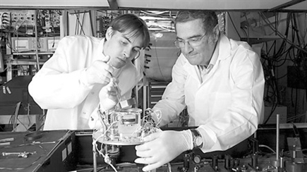 哈罗什博士瓦恩兰博士是合作了25年的好友,他们以独特的方式来探索光与物质的“舞蹈”,哈罗什博士利用经过精细抛光的镜像腔捕捉光子,在光子逃逸或被吸收之前,一个光子来回反弹的时间为十分之一秒——在原子物理学中就是光子的一生,然后,他放出一个“侦测”原子,与光产生相互作用。