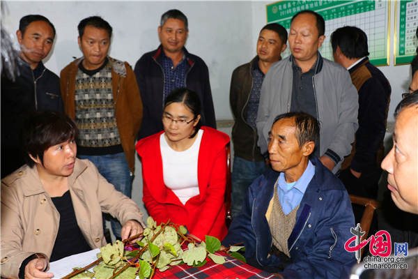 被十八洞村民称为最接地气的科学家——中科院武汉植物园猕猴桃专家钟彩虹(左),现场指导村民猕猴桃种植技术。王振红摄