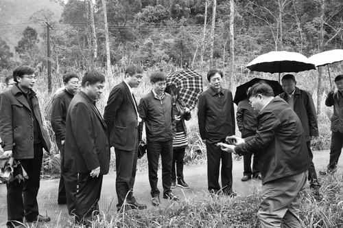 刘伟平(左四)考察环江下南乡古周村种草养牛基地。中科院供图