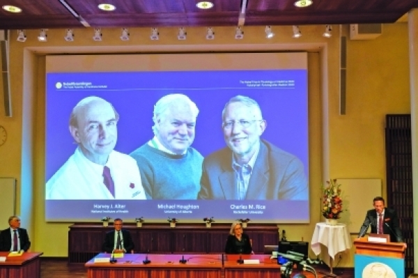 10月5日,2020年诺贝尔奖迎来“开奖”首日。新冠病毒流行改变了世界的“打开方式”,走过百年的诺奖也不得不打破传统,以在线形式开出“首奖”:将2020年诺贝尔生理学或医学奖授予美国科学家哈维·J·阿尔特、查尔斯·M·赖斯以及英国科学家迈克尔·霍顿,以表彰他们为对抗血源性肝炎作出的决定性贡献,尤其是三人合力对丙型肝炎病毒的发现。