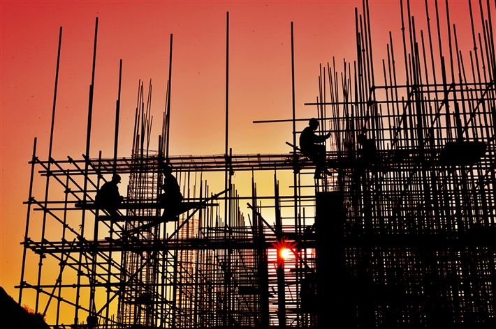 说明:中国散裂中子源工地上,工人们紧张的工作着,他们日出而做,日落不归加班加点的工作着