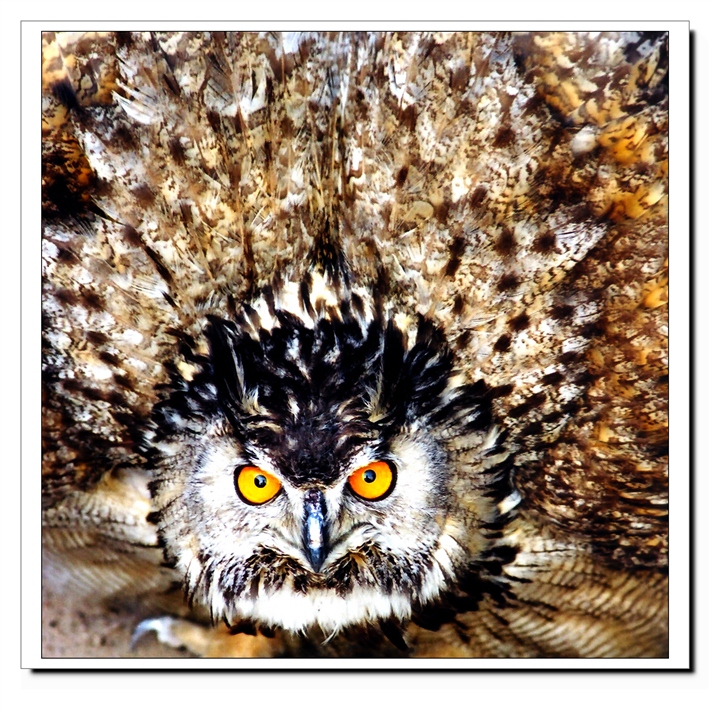 说明:猫头鹰对人的戒备,使得任何人只要靠得稍近些,就会羽毛竖起,进入攻击状态