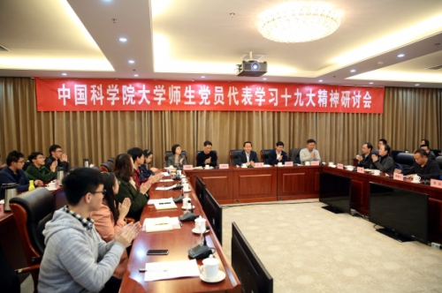 11月10日下午,中国科学院大学(简称“国科大”)党委在雁栖湖校区召开师生党员代表学习贯彻十九大精神研讨会。中科院副院长、党组成员、国科大党委书记张杰参加研讨并发表讲话。国科大党委副书记、纪委书记高随祥主持会议。校党委职能部门负责人以及各学院师生党员代表共50余人参加了会议。这是国科大党委为落实全校学习贯彻十九大精神工作方案组织的第二次集体学习活动。